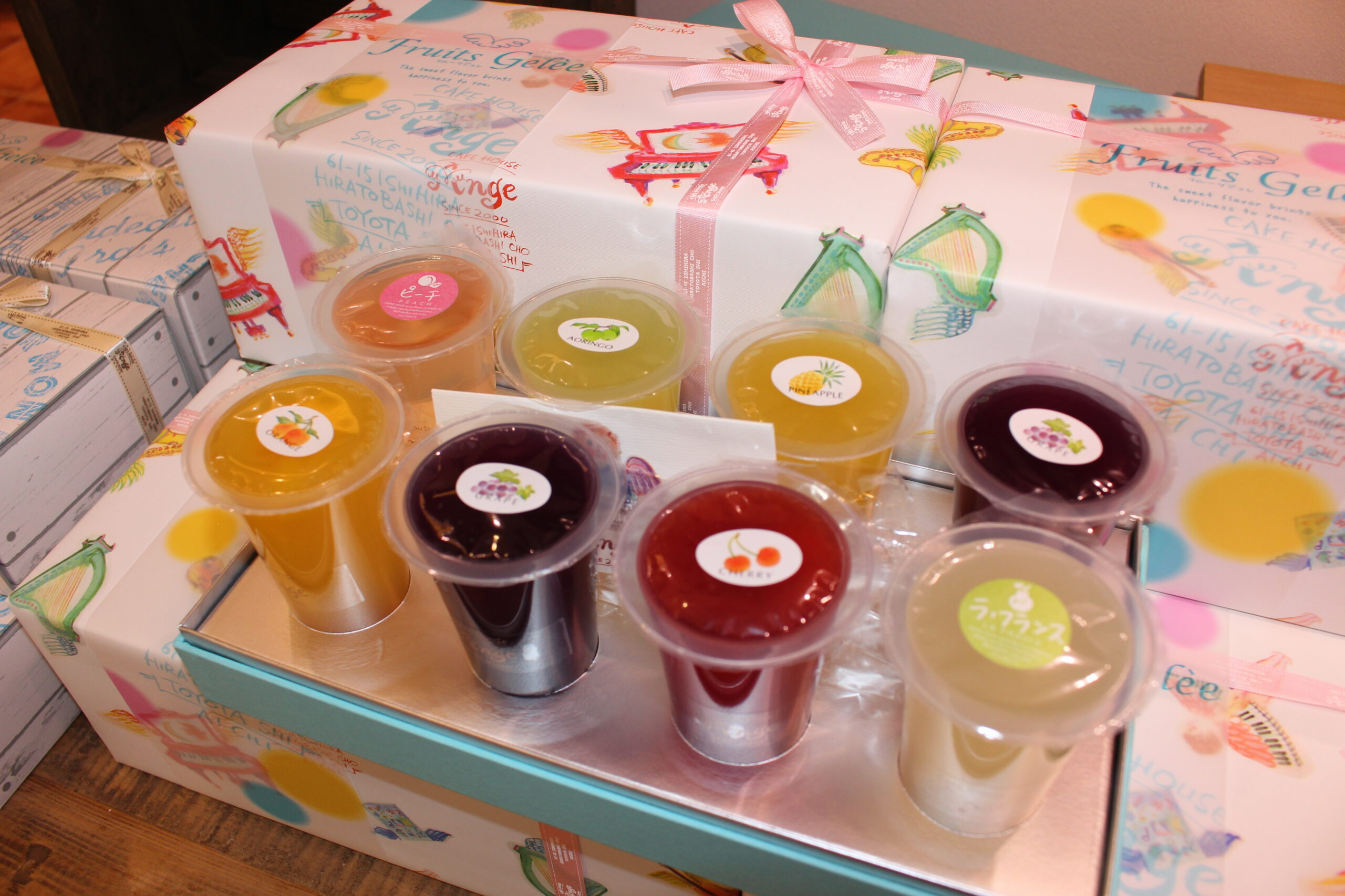 桃、オレンジ、洋ナシ、グレープフルーツ、パイン、チェリー、ぶどう、青りんごの8種類です。  1本:410円 4本入:1,950円
