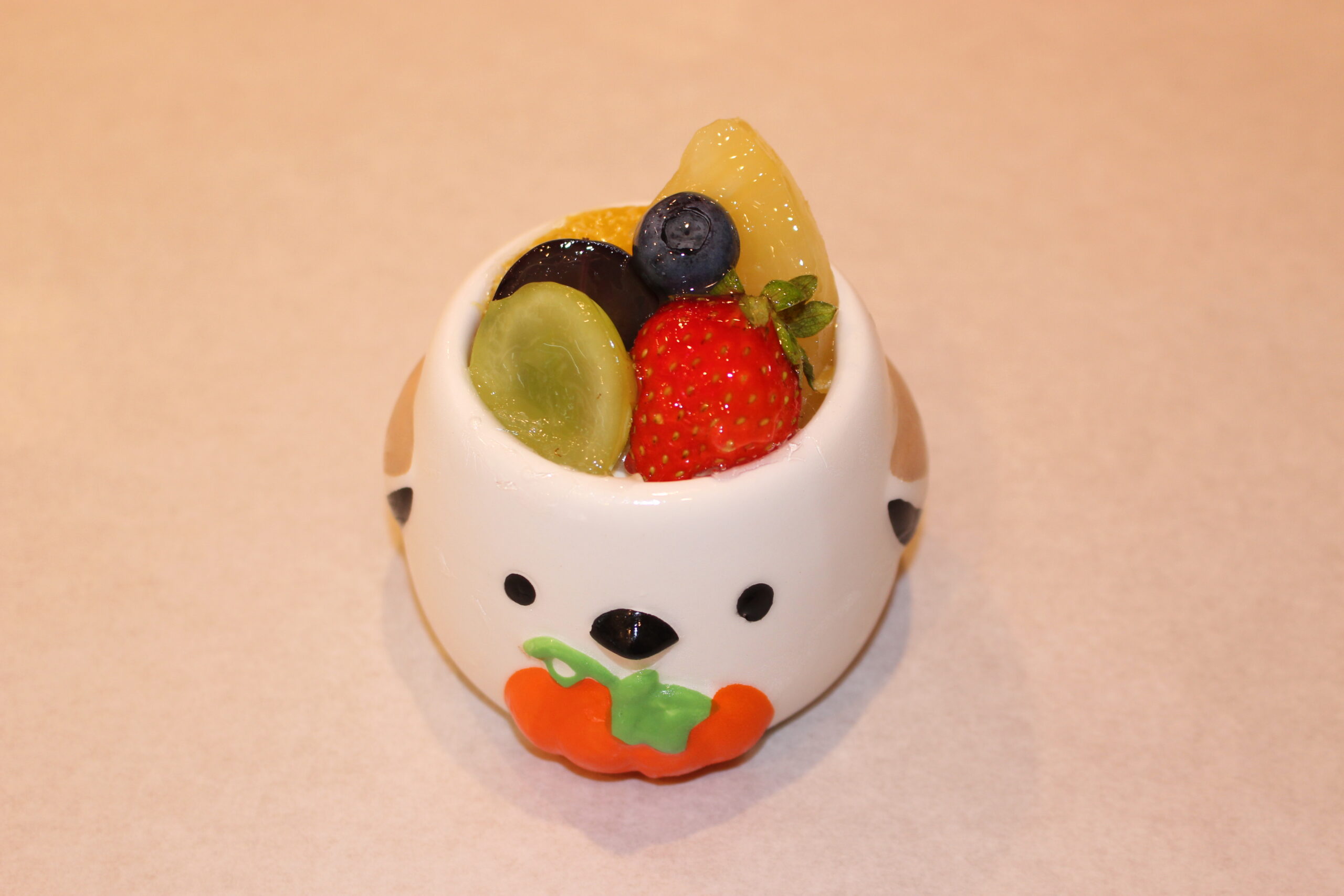 昔ながらのプリンに季節のフルーツを飾りました。