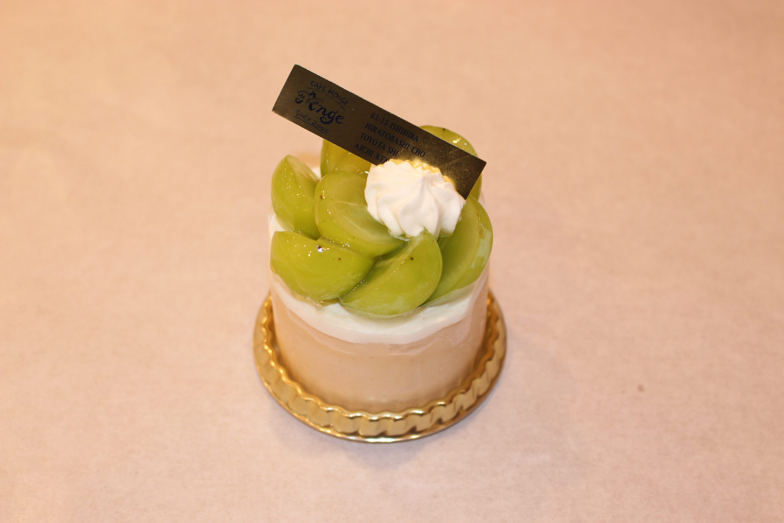 紅茶ムースにたっぷりのシャインマスカット飾った、贅沢なケーキです。