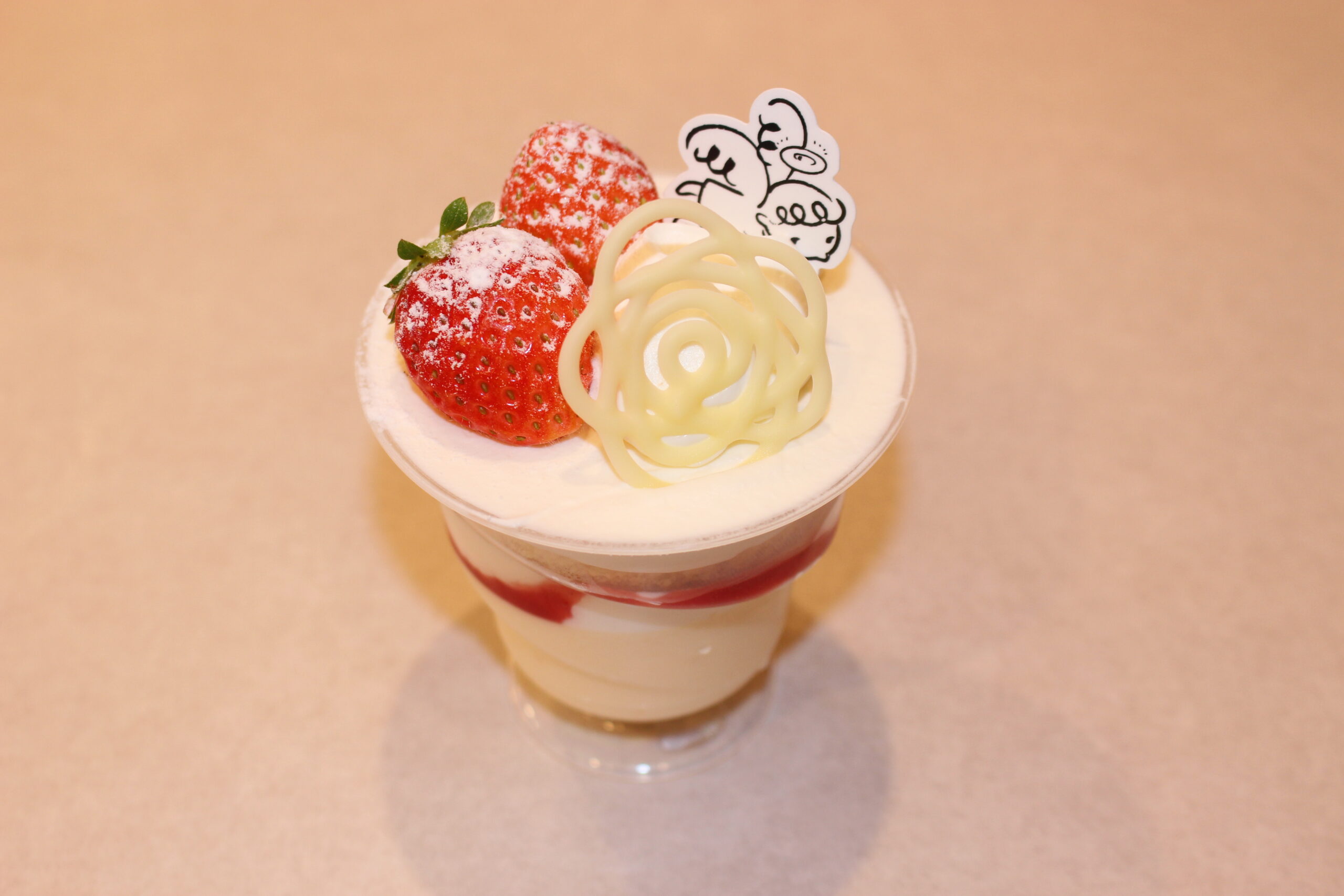 さっぱりとしたヨーグルトムースと苺と生クリーム、スポンジで仕上げました。